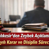 ADD Balıkesir Şubesi Yönetim Kurulu, Zeybek hakkında disiplin soruşturması başlatıldığını ve dosyanın Yüksek Disiplin Kurulu’na sevk edildiğini duyurdu. Açıklamada, görevden alma sürecinin Genel Merkez ile Balıkesir Valiliği Sivil Toplumla İlişkiler Müdürlüğü’nün onayıyla gerçekleştirildiği ifade edildi.