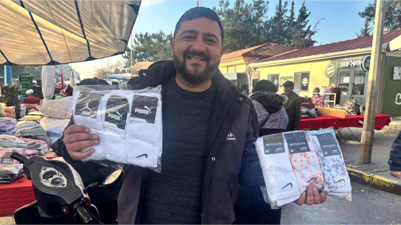 Yaklaşık 10 yıldır pazarcılık yapan Selahattin Uzgur, artan nakitsizlik ve IBAN’lı alışverişe rağmen ayakta kalmaya çalıştıklarını söyledi. Balıkesir'in semt pazarlarında en çok tercih edilen ürün ise beyaz, uzun ve kalın tenis çorabı oldu. Tezgahta fiyat net: 12 çorap 100 TL.