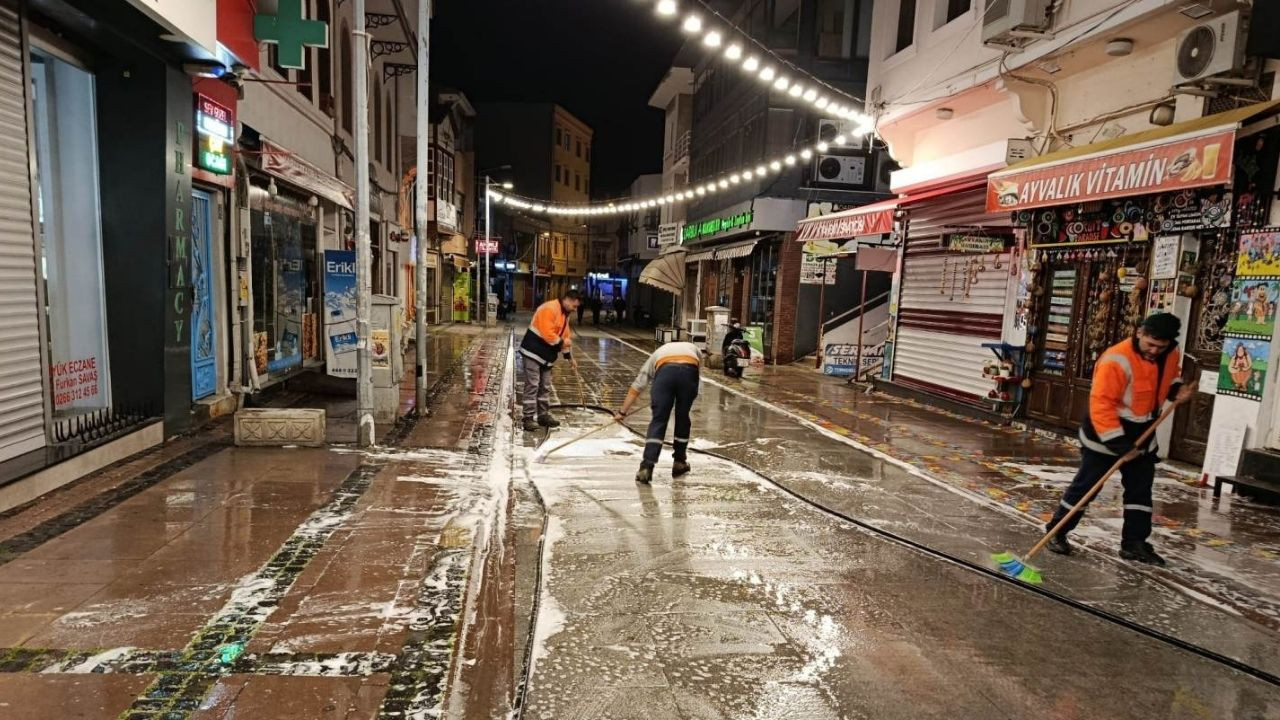 Ayvalık Belediyesi Temizlik İşleri Müdürlüğü ekipleri, Ramazan Bayramı öncesinde kent genelinde kapsamlı temizlik çalışması gerçekleştirdi. Kıyılar ve Talatpaşa Caddesi pırıl pırıl oldu.