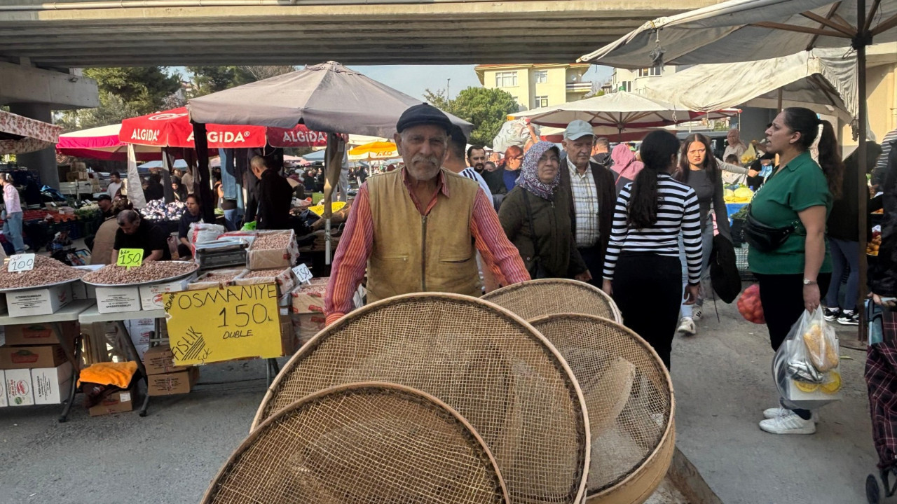 Balıkesir pazarlarında el arabasıyla eleklerini satarak geçimini sağladığını anlatan Demirci, eşi hastalandığı için artık yalnız çalıştığını belirtti.