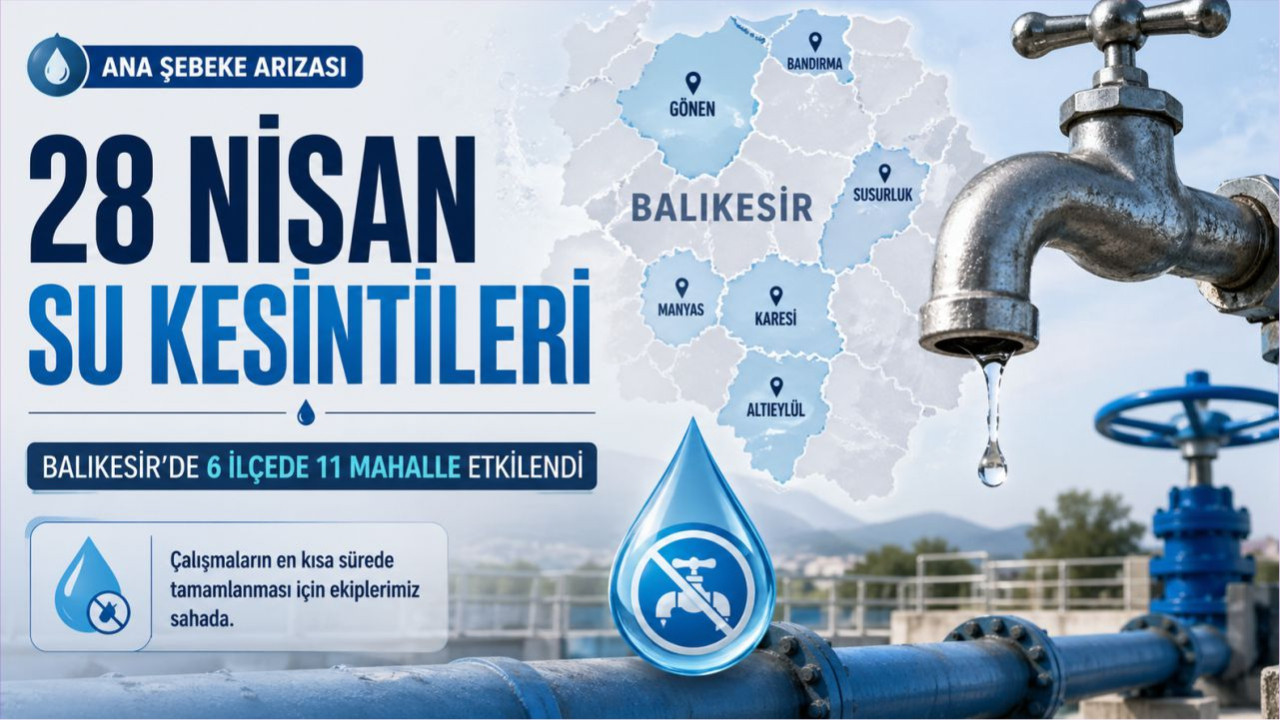 Balıkesir’de 28 Nisan 2026 Salı günü BASKİ tarafından açıklanan programa göre, 5 ilçede ana şebeke arızası nedeniyle su kesintisi yaşanıyor. Kesintilerin bazı mahallelerde saat 18.00’e kadar sürmesi bekleniyor.